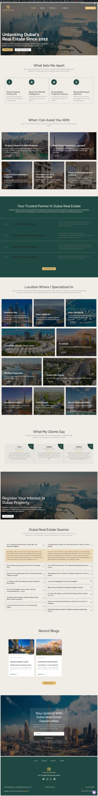 Inovista Tech did an outstanding job building my real estate website prorealtor.me from scratch. The design is clean, professional, and perfectly reflects my brand as a Dubai property advisor. They structured the site beautifully, from service pages and location-specific content to an FAQ section and blog. On the SEO side, they clearly knew what they were doing; the content is well-optimized for Dubai real estate keywords. The whole experience was smooth and the result exceeded my expectations. Highly recommend inovista tech to anyone looking for a serious web presence.